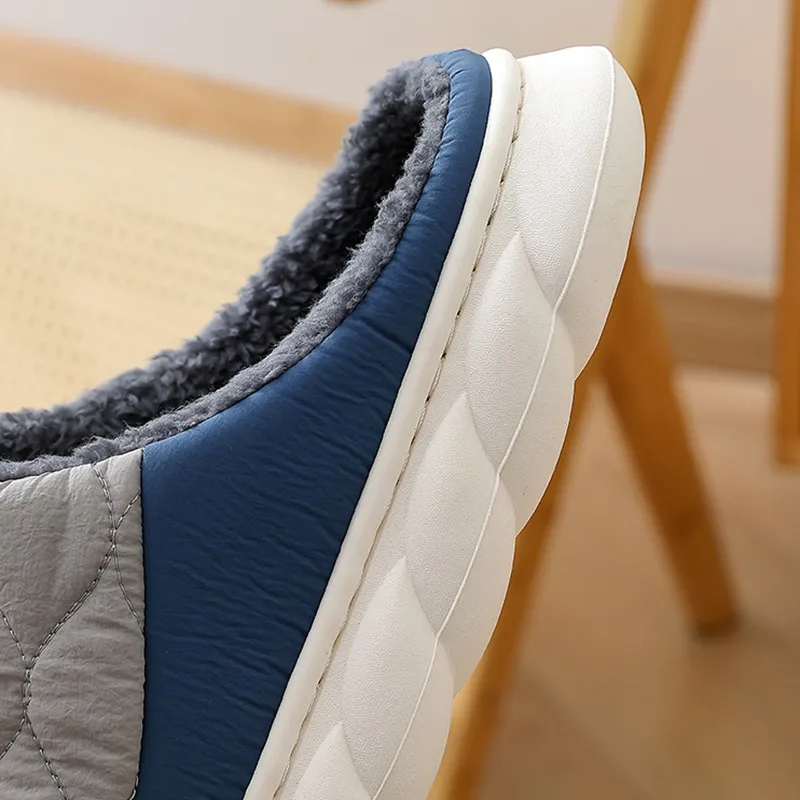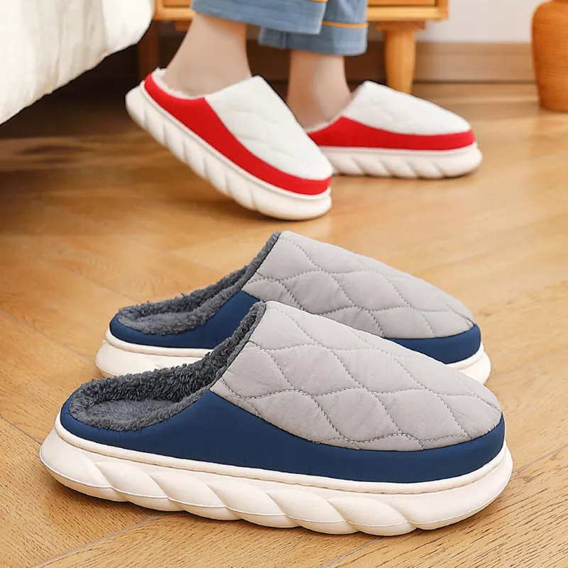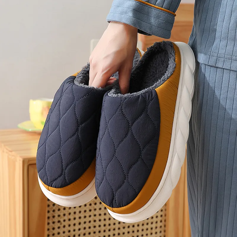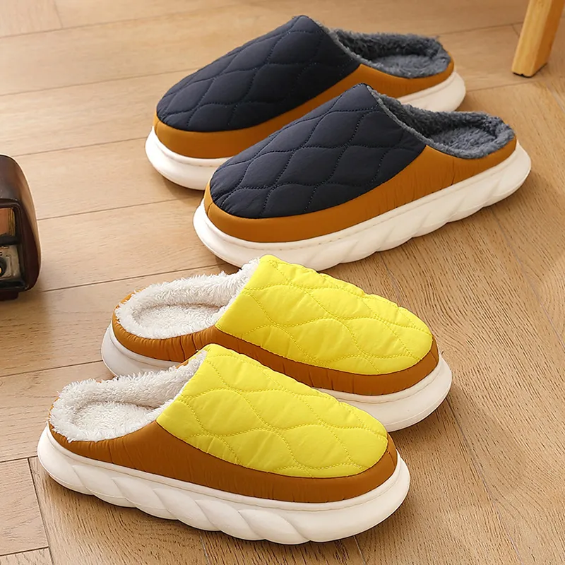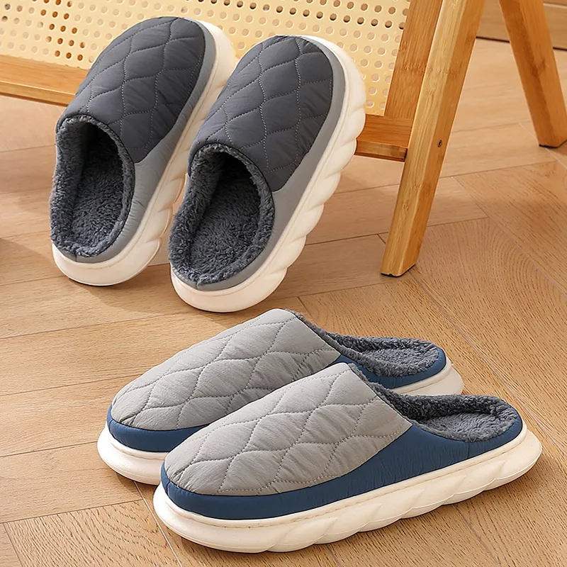 Plaid Down Slippers Warm Winter House Shoes