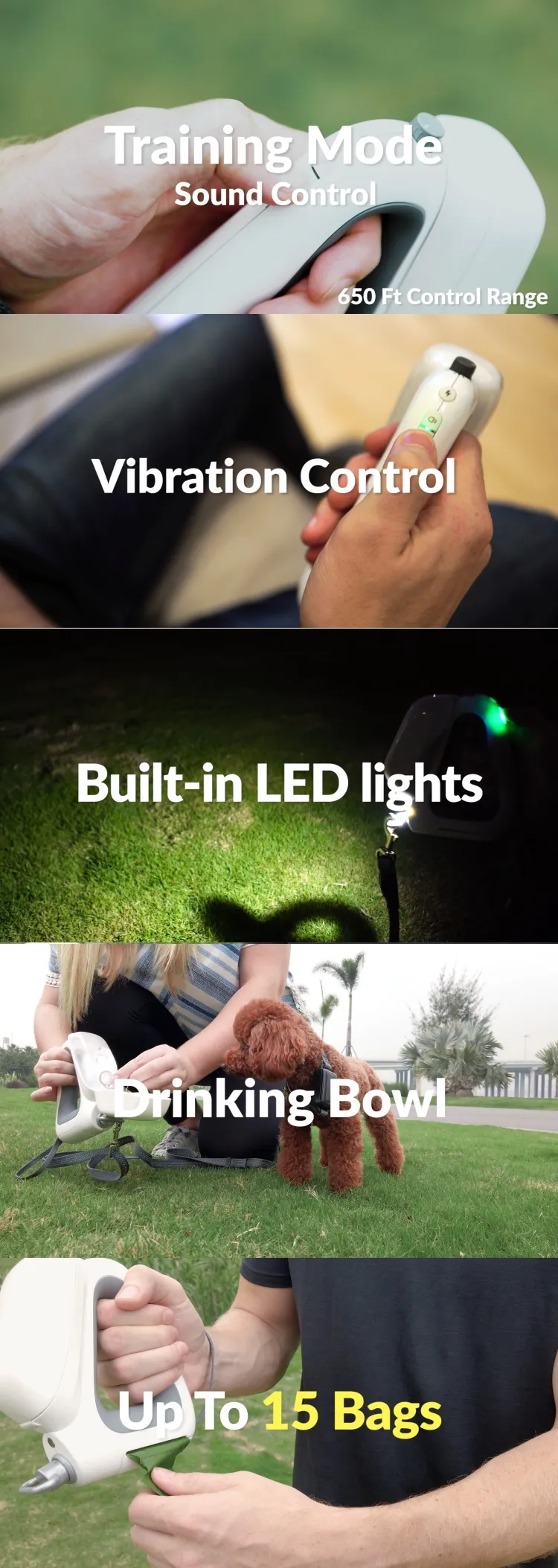Upgraded 3 IN 1 Retractable Dog Leash With Integrated Dispenser & Poop Bags Dog